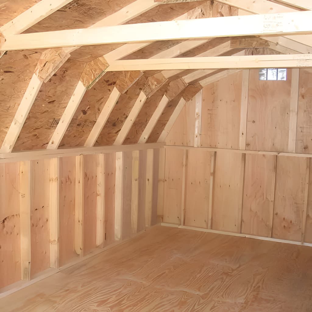 - The shed's roof is designed with a 5/12" pitch, providing better water runoff and adding to the shed's overall durability.