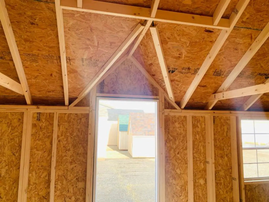 - 6′ sidewalls with 16″ o.c. Wall Studs provide strength and stability to the structure.